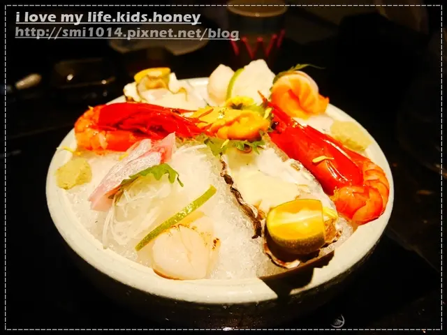 炙燒生食級干貝、胭脂蝦、南非生食級生蠔、馬糞海膽、鮭魚,天啊~這樣一盤是否太澎湃!