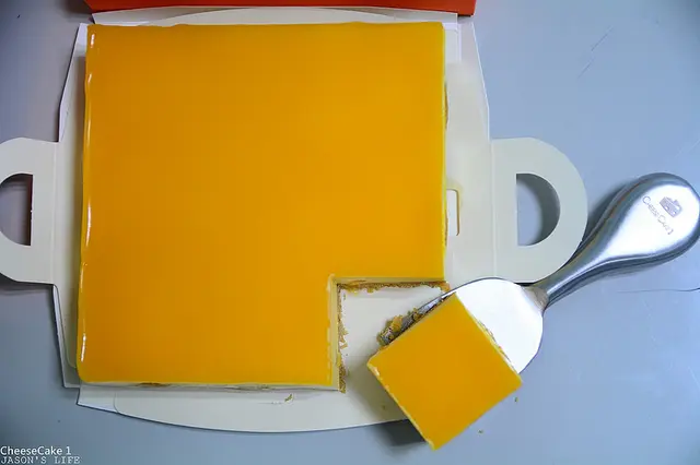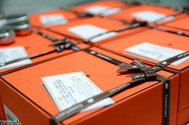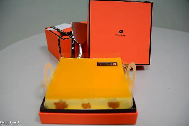 每個用橘色的硬盒,精美包裝了起司蛋糕