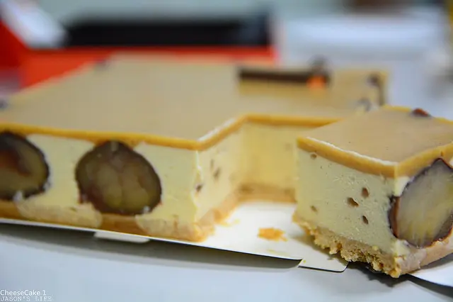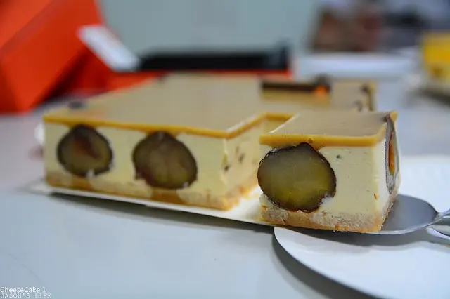 切開後起士層裡,也是有滿滿小塊的栗子果肉