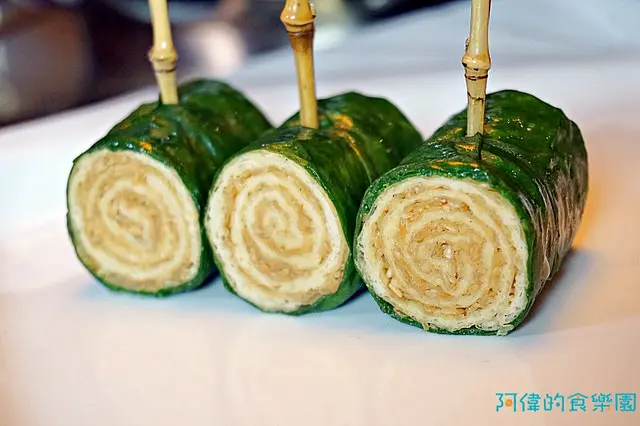 外層是菠菜,裡面是日本的手工豆皮捲著芝麻跟芝麻醬
