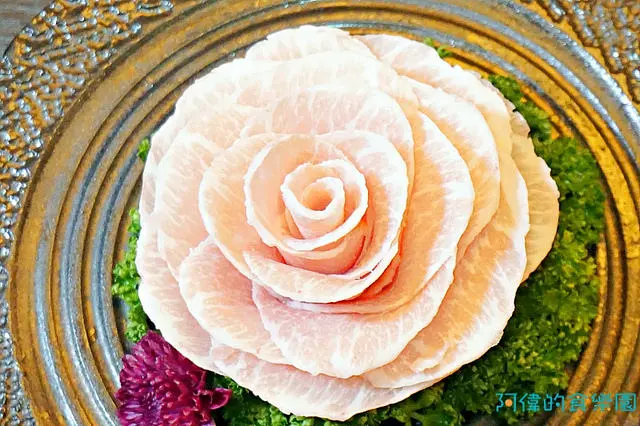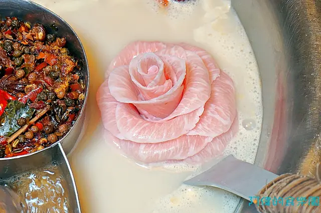剛剛的松阪豬玫瑰花,店員建議放白鍋,你瞧這就是它要下鍋的那一剎那,好美啊!