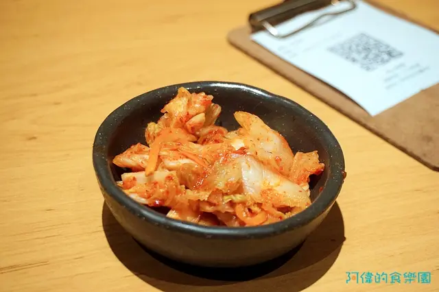 首先店員上一碟韓式泡菜,這是可以免費續的,清脆爽口、水份多,而且只有微微的酸辣,怕辣的我覺得相當好吃。