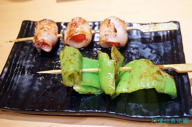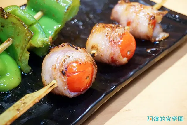 而這串豬五花包蕃茄是店裡招牌,豬五花的油脂香不用多說,但一咬下番茄迸出的酸甜番茄汁立刻平衡了油膩感,相當美妙的口感,必點啊!