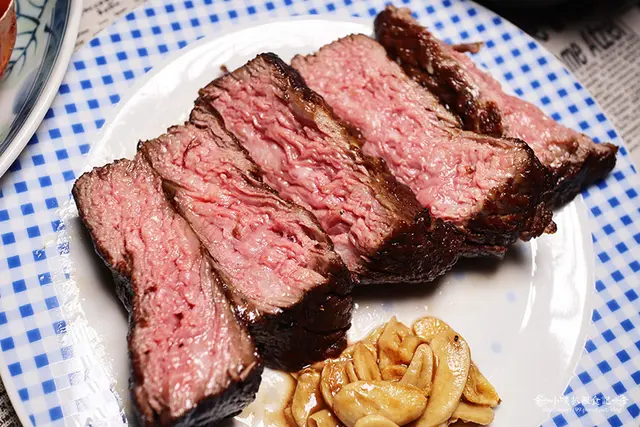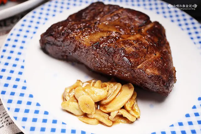 細細品味,入口之後,口中滿是牛排的醇厚肥美的飄香滋味,搭配附的烤蒜,更別有一番風味