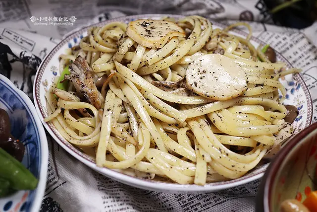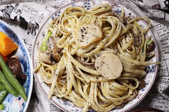 飄香的松露香氣實在迷人,搭配多量的切片杏鮑菇及多種菇類,麵條也相當多量,適合二人分享