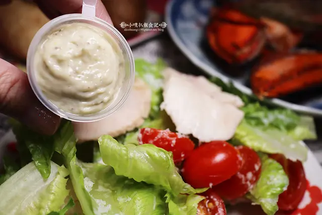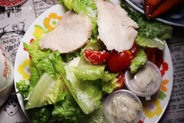 充滿蒜香的凱薩醬,搭配清新爽脆的生菜,相當爽口