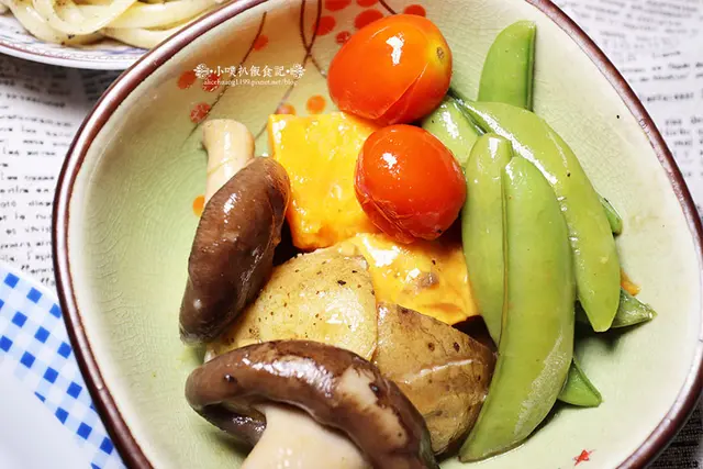 爐烤甜豆、小番茄、南瓜、馬鈴薯、香菇,時蔬保有水份,相當清新爽口,南瓜也香甜綿密,馬鈴薯也軟質可口