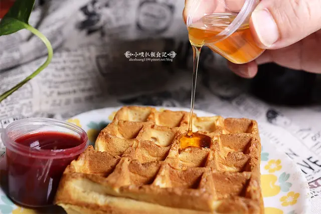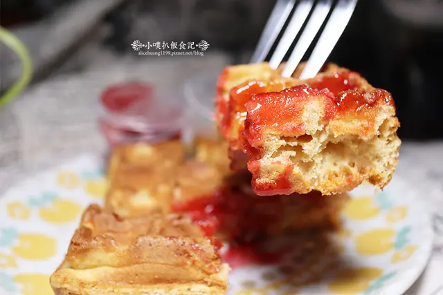 不同於坊間一般鬆餅店濕潤紮實的口感,輕鬆餅吃起來鬆脆爽口,很驚艷!我後來還特地致電店家詢問,他們表示因為在鬆餅粉上的配方有做微調,並特別加入少許酵母,讓鬆餅內空氣感變多,烤起來就會酥酥脆脆的!原來一個小小的鬆餅,也可以有這麼多學問啊