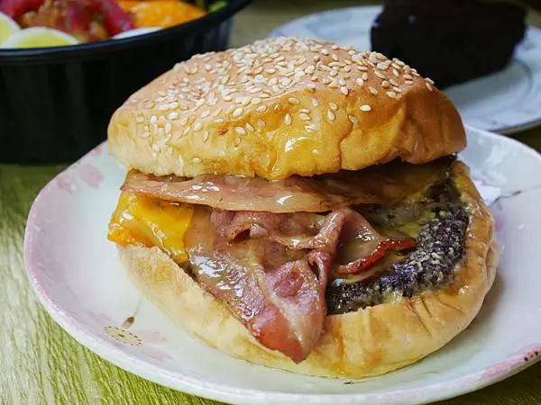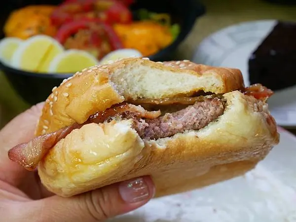 主餐部分先來看一下花生醬牛肉漢堡,這款大推啊!