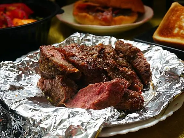 另一份主餐我點的是蒜味牛排,雖說自已也可以在家煎牛排吃,但餐廳做的就是不一樣,你看這牛排上頭沾滿了蒜味醬料,