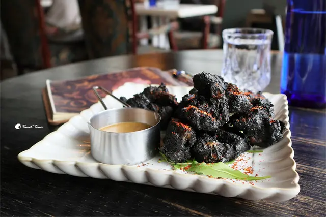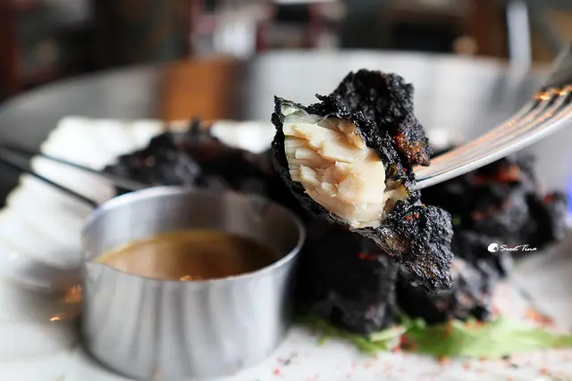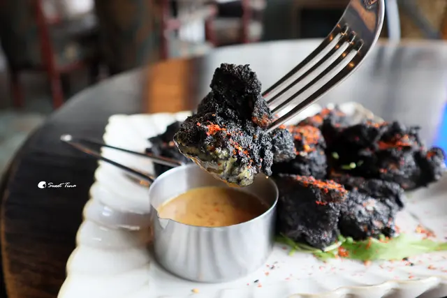 黑森林特製香料炸雞 - 炸雞外皮裹上墨魚汁再加上特製香料,送上來時就能聞到香氣,咬下後外酥內嫰,相當美味。