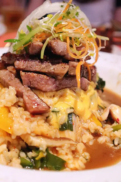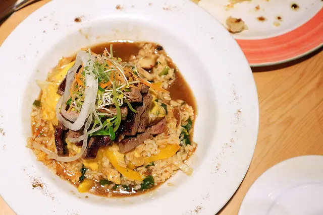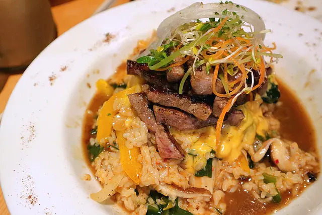 泡菜炭烤牛排起司飯(NT$350+10%)