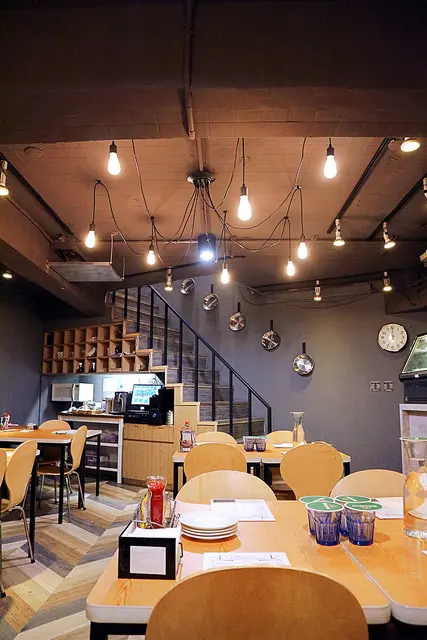 各桌間留著恰好的距離,明亮活潑的色調更帶出青春活潑的氣氛,用餐、聊天起來很自在