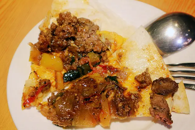 以及牛肉醬、洋蔥、甜椒、起司、墨西哥辣椒與墨西哥香料的香氣交織著,大滿足