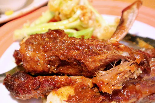 他們叫做“夏威夷”肋排,所以醬汁裡嚐得到有點酸酸甜甜鳳梨味