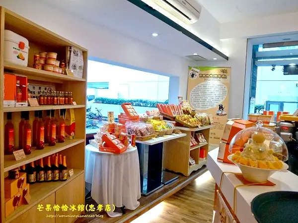 櫃枱前擺滿各種琳琅滿的芒果相關製品。