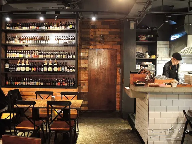 進門可以看到那啤酒展示櫃外開放式的廚房空間也映入眼簾