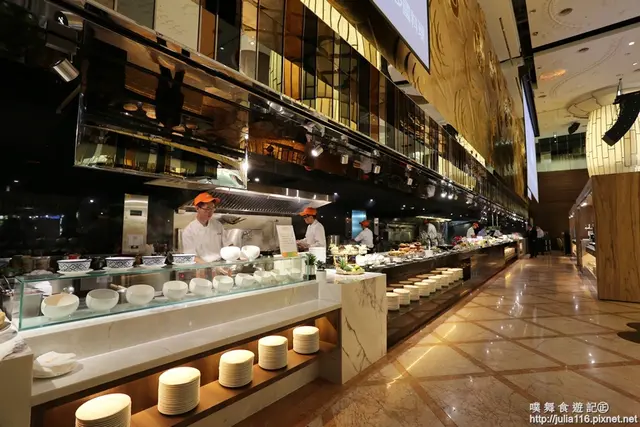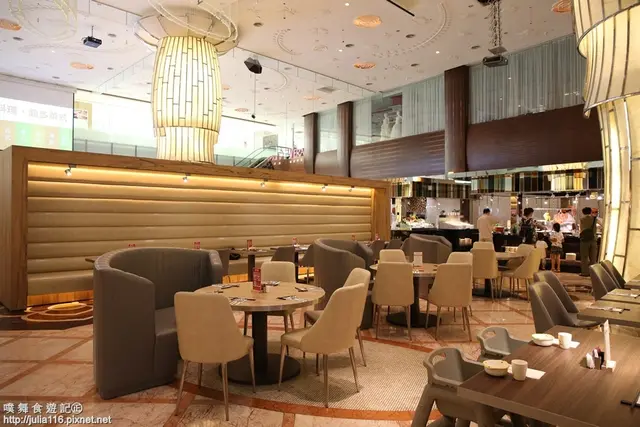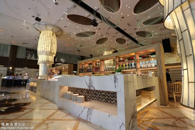 豐FOOD百匯用餐環境承襲典華一貫的典雅,金色立體廊柱與天花板雕花讓空間多了一分奢華氣派