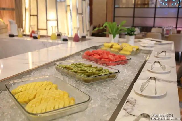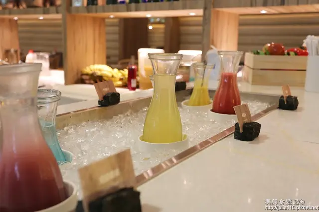 ▼現榨果汁共六種口味,我喝了葡萄優格、西瓜汁、柳橙汁、芒果汁、鳳梨汁