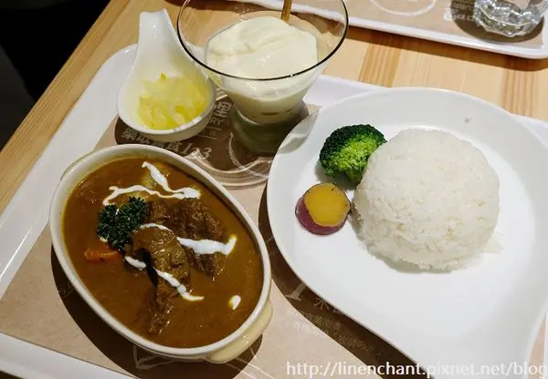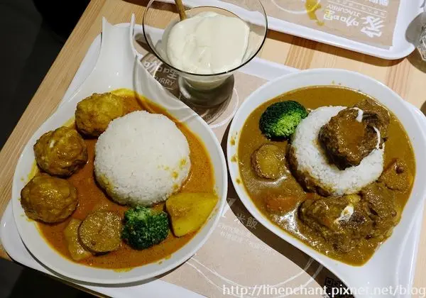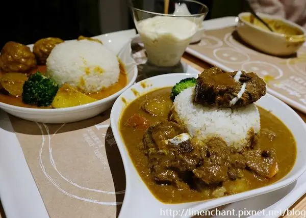 我們點了兩款咖哩,本來我預期咖哩的味道會差不多~只差在配料的不同...