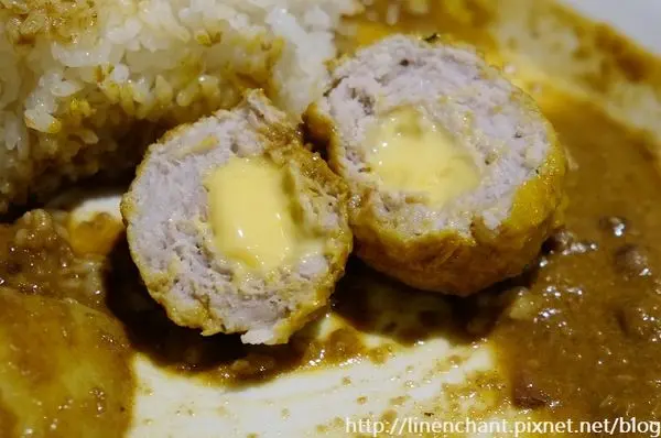 咖哩丸子吃起來很紮實,裡面居然包了起司...