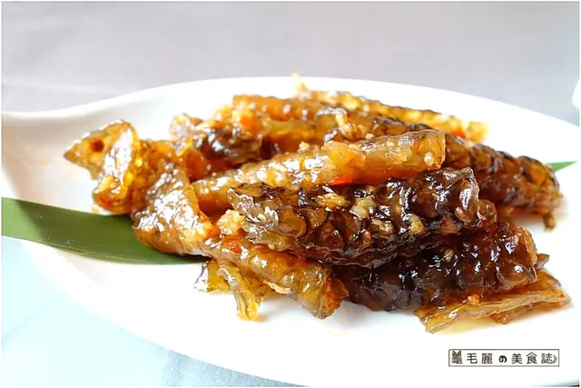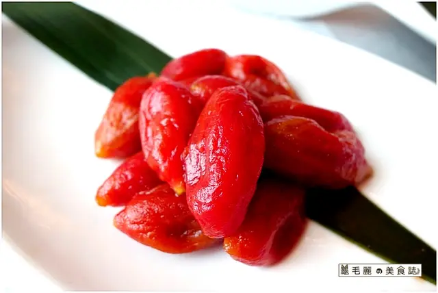 去皮之後的彈性不錯,醃漬入味,帶有梅子的清香,又微酸的解膩效果。