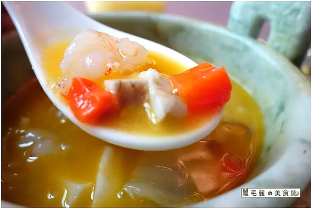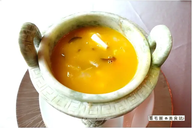 ▲橙黃色的湯色,沒有勾欠,第一眼大家以為是南瓜湯底,一喝,卻發現它鮮甜溫潤有層次,絕非南瓜可以比擬!