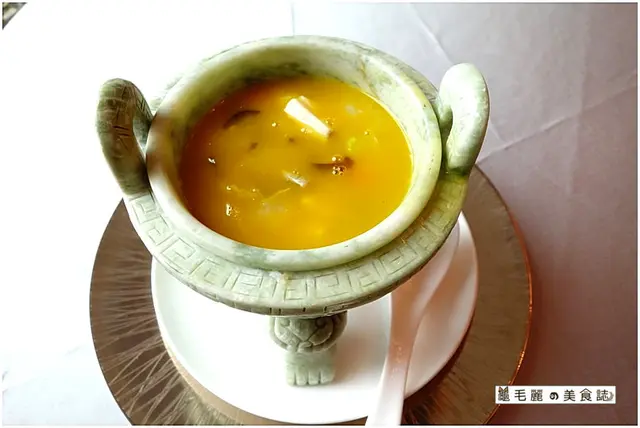 即為譚府宴中,湯稠味濃的金湯小米海皇寶。