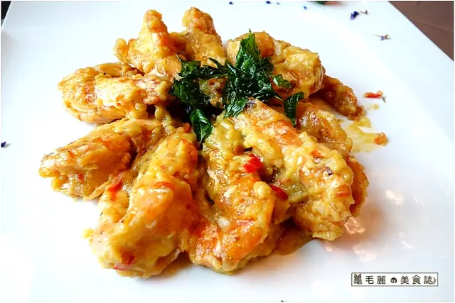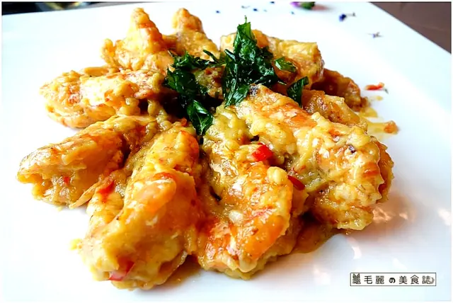 大蝦油炸之後,再以麵粉、牛油、檸檬汁處理,吃起來非常香甜,還一度讓我們誤以為是柳橙的香氣。