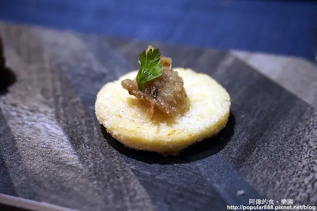 由於阿偉與友人一起來用餐,主廚就出兩種精緻前菜,但在菜單上並沒有顯示,純粹是由主廚隨心所欲提供。因此下次再來,可能吃到的又是不一樣的了。
