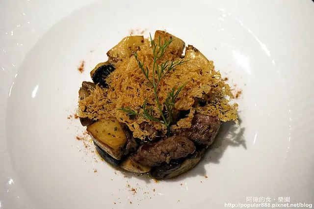 這是一道阿偉必須大推的前菜,用杏鮑菇、香菇、洋菇炒過之後香氣都出來了,再與烤過的Choice級的安格斯無骨牛小排作組合。
