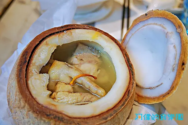 超有特色的椰皇燉雞,那湯頭之鮮美甘甜應該是阿偉喝過的前三名!