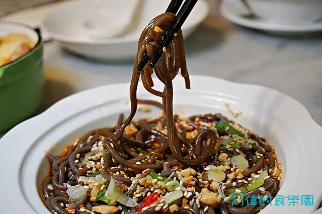 源自川菜系的泡椒牛腱為當地家常菜,主廚以費工的自製醬汁製作,堪稱是整道菜的靈魂所在。首先必須先以八角、花椒、紅蘿蔔等各式食材香料蒸煮牛腱1小時,接著放涼後放入泡椒醬汁與醬油醬汁再浸泡。泡椒醬汁使用了紅辣椒、青辣椒、朝天椒、美人椒共四種辣椒製作,讓辣椒香有了多種層次風味,而醬油醬汁則以醬油、黑醋等10種以上香料混合;透過2種醬汁的風味調和,使牛腱肉質軟嫩不失嚼勁,醬汁甜鹹辣麻皆有,各種辣椒香氣層次豐富,尾韻的麻香適度,令人回味不已。