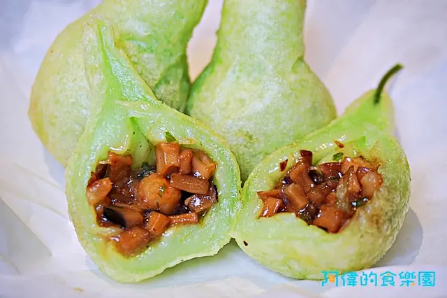 這是招牌中的招牌,口感類似鹹水餃外皮的啤梨果,在粵語指的就是西洋梨。以糯米粉特製而成的縮小版西洋梨裡,包入以蠔油等調味炒製的蟹肉、鮮蝦、干貝絲、香菇等內餡, 剛上桌的西洋梨因糯米粉麵團比例使用恰當,加上師傅手捏功力得以直挺站立,嚐起來具些許甜度又鮮脆Q彈,而豐富的蟹肉等海鮮餡料鹹甜風味則從舌尖竄出,充分表現出視覺與味覺的完美搭配。