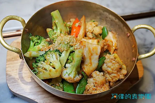 阿偉不知道這裡面的醬汁是什麼?帶一點辣度,但不影響花椰菜的清脆。