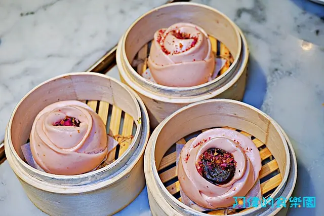 外型如同玫瑰般纖細浪漫的饅頭,以低筋混入中筋麵粉製作,減少黏牙的口感,而粉色的色澤則是先將食用級的玫瑰花瓣泡水後加入甜菜根、玫瑰花瓣一同攪拌進麵團,增添香氣。然後放入天然酵母約靜置約1小時時間天然發酵,最後蒸約4~6分鐘,蒸完後再撒上花瓣 增加香氣與視覺。由玫瑰花瓣散發出的天然香氣,搭配甜菜根的自然色澤,讓粉玫瑰饅頭吃起來味覺與嗅覺皆讓人聯想到浪漫氛圍。