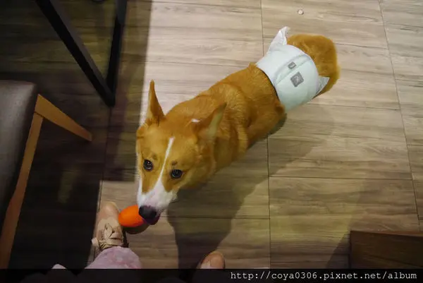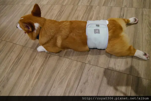 如果是公的小毛孩會幫牠帶上禮貌帶,母的則是包上尿布