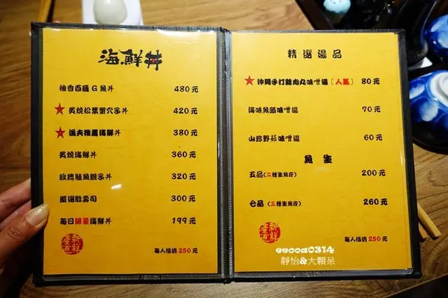 主要就是提供海鮮丼,有多種可以選擇,另外還有湯品、生魚片、茶碗蒸、手卷及飲料,店內有低消限制,每人$250元