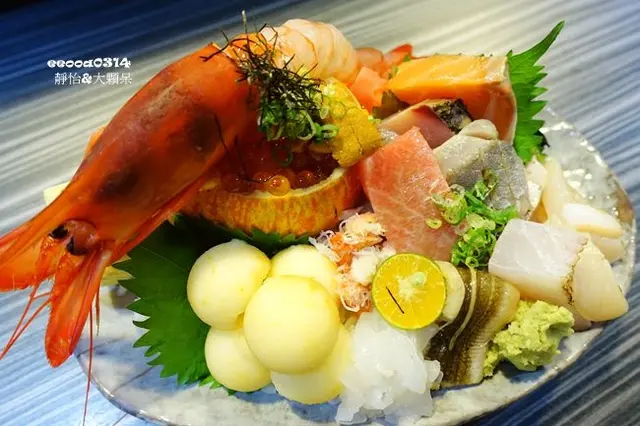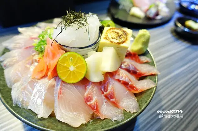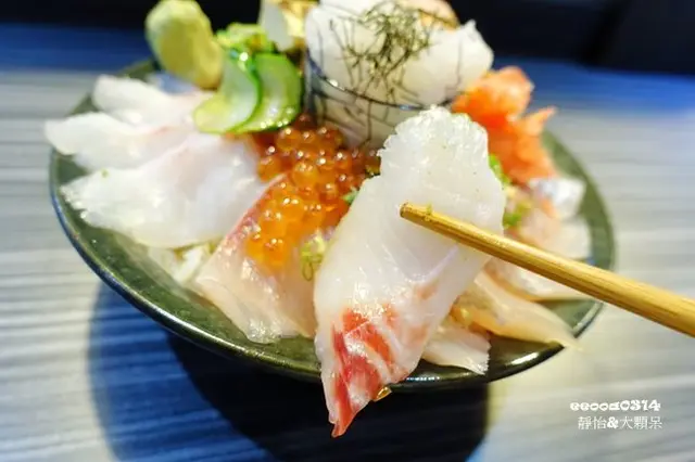 雖然已經要吃丼飯了,但還是忍不住先點了一份生魚片,畢竟肥貓漁夫的魚貨都是每日由漁港新鮮直送的絕對尚青,當然要吃看看