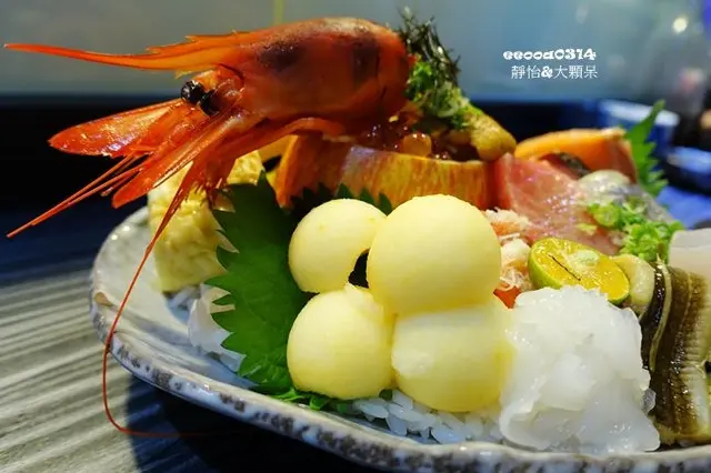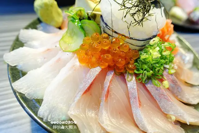每一片生魚片都切得大小切不多,也很美這刀工很厲害喔,雞魚類吃起來無腥味,肉質又細緻讓我吃得相當開心,鮭魚卵在嘴裡跳耀的感覺真好