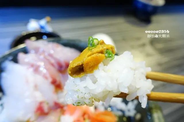 有看到上圖裡的那片帶有豐盛油脂的魚片嗎!?沒錯..那就是黑鮪大腹,超級吸睛的呀,沒想到居然在丼飯裡可以吃到,在嘴裡油脂爆開的感覺真是難以言喻的滋味,只能說你來吃看看就知道了