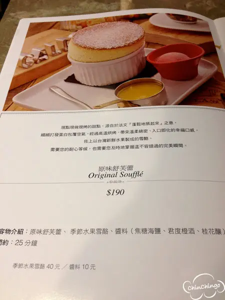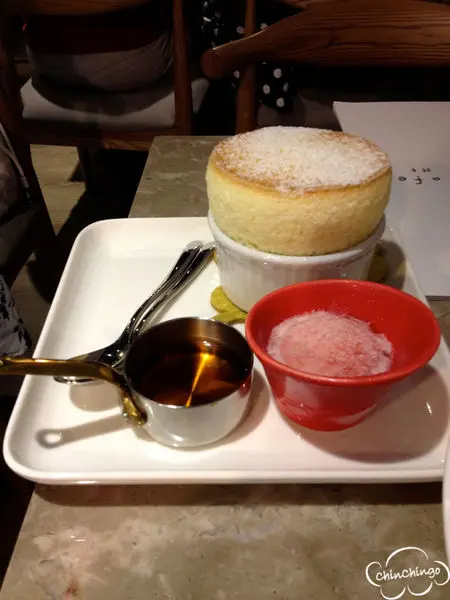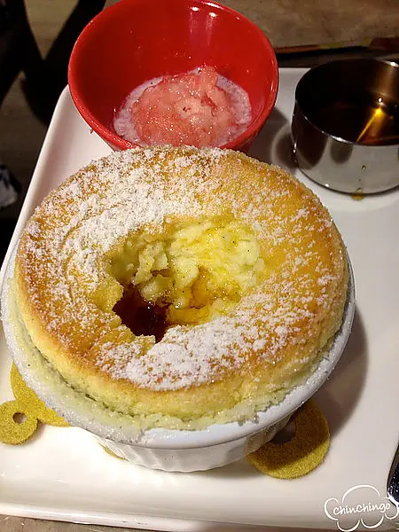 吃舒芙蕾通常會先從中間挖一口吃原味,媽呀~~~無比好吃!!入口即化!!很像在吃熱的蛋糕式的烤布蕾