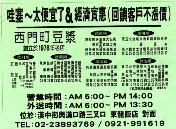這個位在漢口街看似不起眼,卻很又明顯的老店「西門町豆漿」