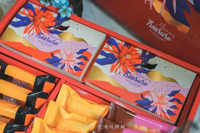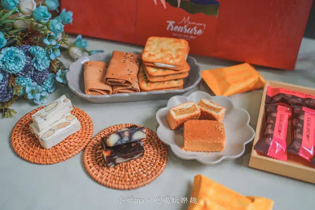 這個春節禮盒一共包含了法式牛軋糖12入、南棗火山豆豆菓12入、原味薄捲餅5入、芝士鳳梨酥6入、牛軋餅-蔥鹽風味6入,甜甜的法式牛軋糖、南棗火山豆豆菓更是過年必備呷甜甜的涮嘴小點心,鳳梨酥也是大家年節送禮必備,象徵旺旺一整年的意思,收到糖村的繽紛花賞禮盒一定會福氣滿滿啦