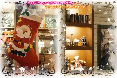 可愛的聖誕襪與櫃子上的書籍與茶壺組