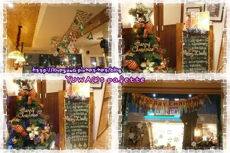 天花板上貼滿著小聖誕樹的吊飾,吊燈也換上了紅綠的衣裳。