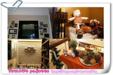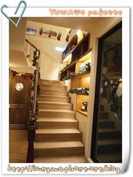 上樓前盛裝的聖誕書紅色、藍色的轉換著氣氛。