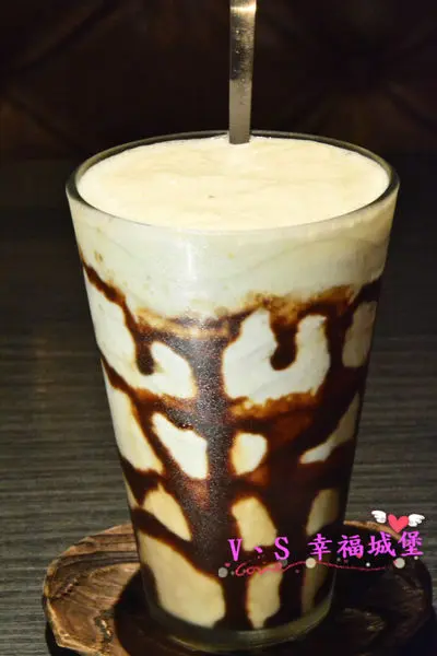 新鮮現打的香蕉牛奶很順口,杯子四周還淋上了巧克力,就算攪拌一起喝也不甜膩,香濃的味道讓人不自覺就喝完了。