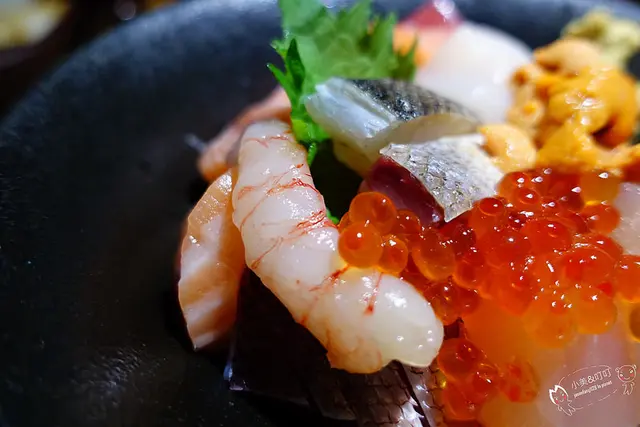 蝦子肥美、新鮮、蝦肉Q彈有勁。鮭魚卵也相當新鮮