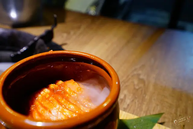本身有醃製過的松阪豬、在熱情的烤盤上滋滋作響,很難不去打擾服務生